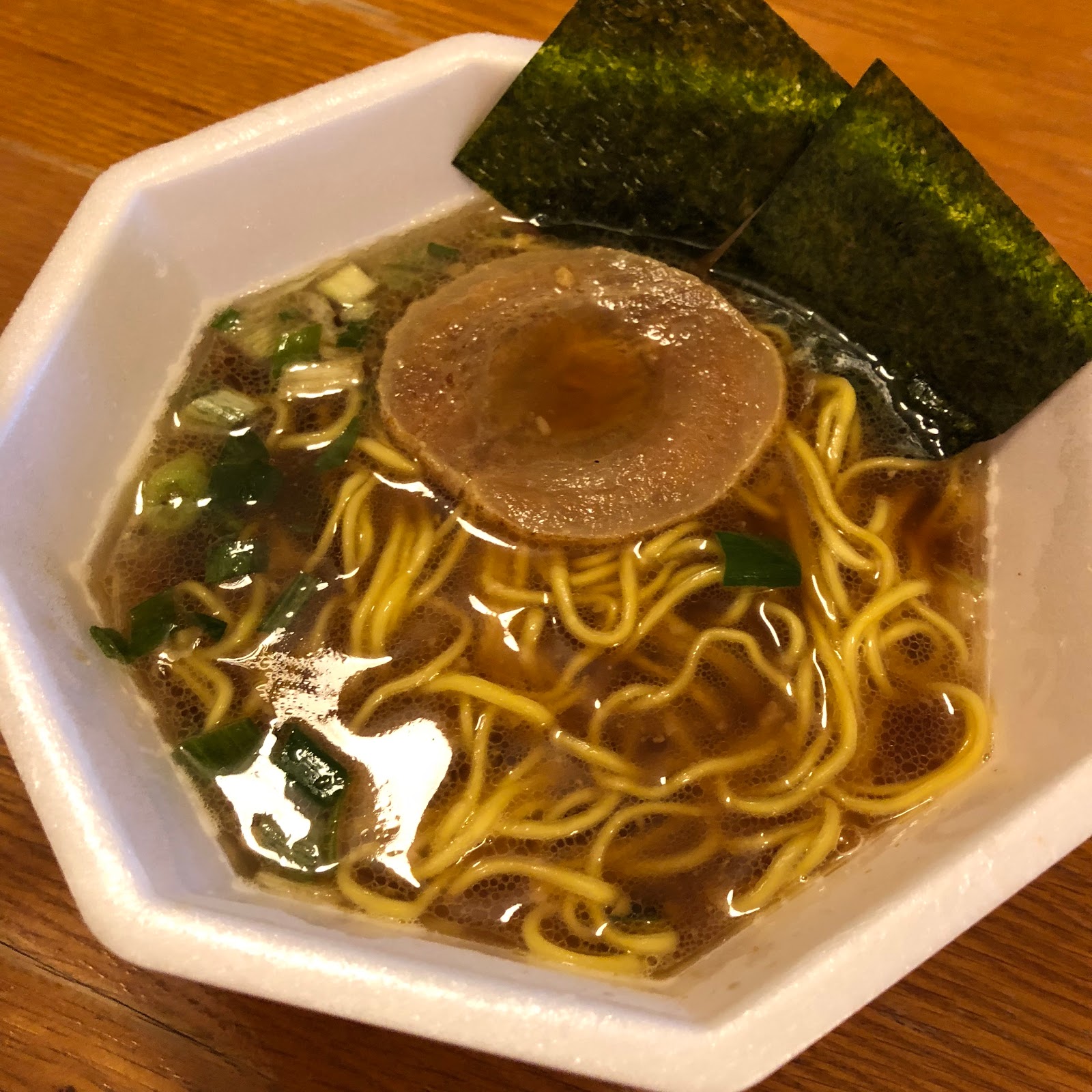 This shoyu instant ramen is as good as I remember. The broth has a nice deep soy taste with more savoury undertones so it isn't just salt or soy you are tasting. It smells really nice too and you can tell it is going to be a tasty broth from the aroma. The noodles have a round cross section, have a nice firm feel that isn't too chewy, and are nice noodles. I've seen a video about how they make these noodles and they don't just knead dough and roll them out. The noodles are composed of more than one layer with different doughs. The chashu rehydrates nicely and is a nice touch to the soup with its meatiness. This is a very tasty noodle soup, but I do wish there were more toppings and the broth is nice to the last drop. This bowl of noodles is a superior product.